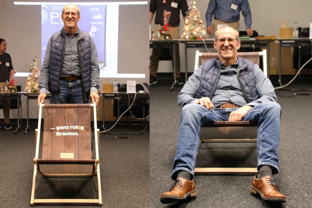 Bei unserer letzten gemeinsamen Sitzung in diesem Jahr stand ein ganz besonderer Moment auf der Tagesordnung. Wir haben unseren langjährigen Schreiner, Kollegen und „Holzwurm“ Edgar Wissel verabschiedet.