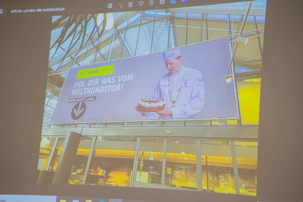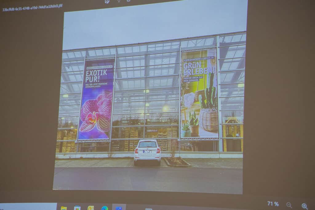 Anhand ausgewählter Beispiele zeigte er, worauf es bei Gestaltung, Materialwahl und Umsetzung ankommt, damit Banner auch aus der Entfernung aufmerksamkeitsstark und gut lesbar sind. Der Beitrag lieferte einen interessanten Überblick und praktische Einblicke aus der täglichen Arbeit.